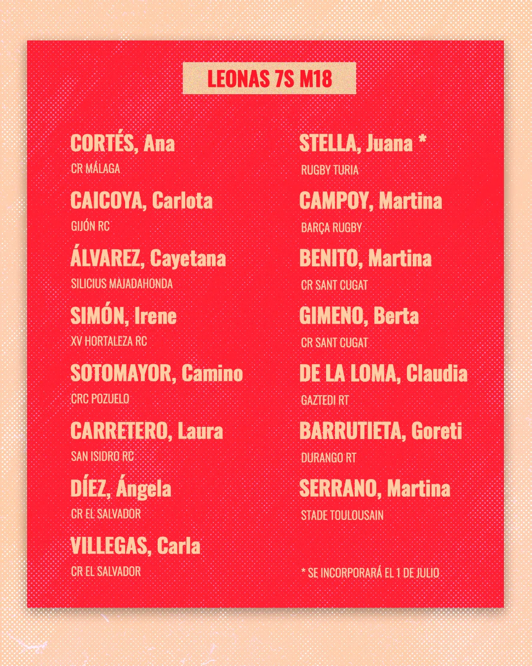 La Selección española de rugby 7s M18 femenina vuelve a la disciplina nacional a en Madrid del 25 de junio al 3 de julio para preparar el campeonato de Europa de la categoría, que se celebrará en Estrasburgo (Francia) el fin de semana del 6 y 7 de julio. Las Leonas7s M18 consiguieron la pasada temporada colgarse la plata continental por segundo año consecutivo y ahora comandadas por Patricia García esperan poder repetir esas buenas sensaciones.